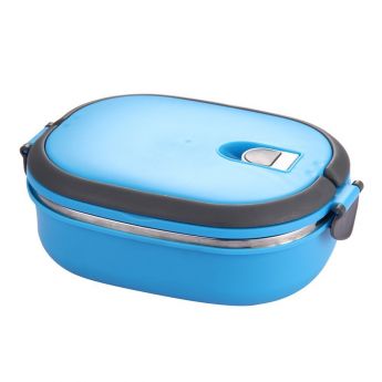 The steel food storage box can store a maximum capacity of 0.9 L of food and comes with easy to carry handles. There are two handles provided with the lunch box that allows to easily take the lunch boxes wherever you go. It can keep your food warm for a maximum of 2 hours. There is also latches provided in the side and also a latch on top of the lid which when pressed will open the lid. It is a pretty easy method to open the lunch box as you just need to push the button.