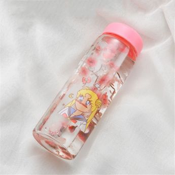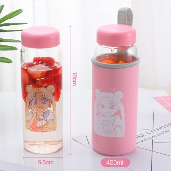 Beautiful water bottle in anime style with a Japanese girl. Comes with a bottle case. Made in pink.