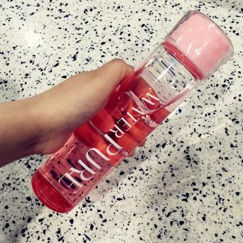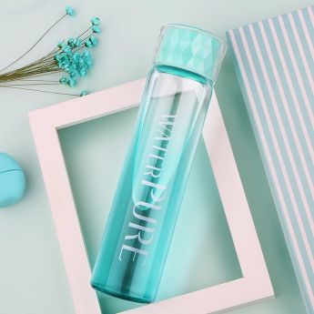 Stylish rounded water bottle. Available in several styles, has a diamond-shaped cover. Made from food safe materials.